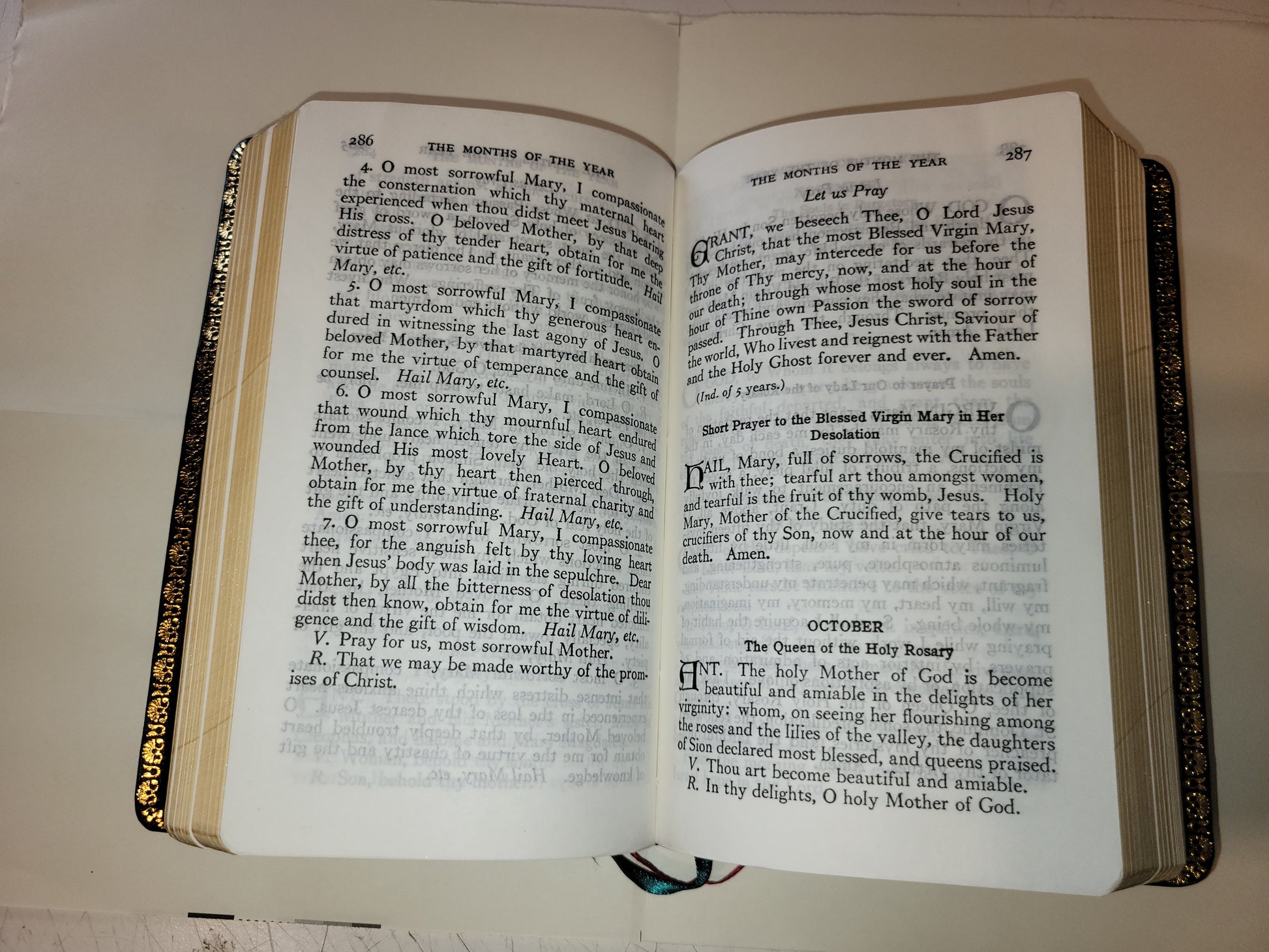 Description: A Complete Catholic Prayer Book With Epistles & Gospels for Every Sunday & Holyday of the Year [a wide variety of prayers, litanies, devotions, pious exercises, meditations, etc. with the ordinary of the Mass (in English & Latin)]